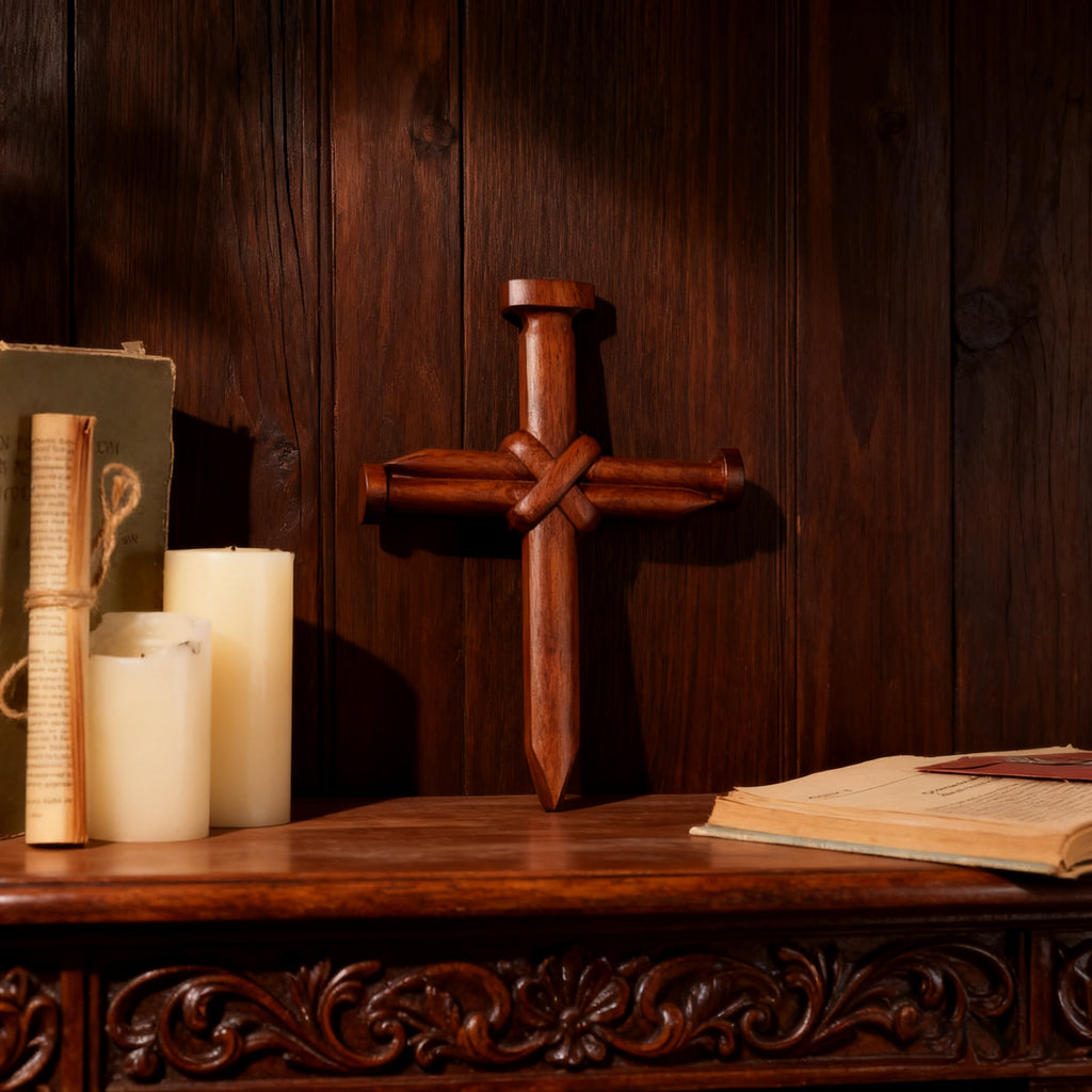 • Hand-Carved Detail: Skilled artisans shape every edge of the nails and the tight knot—turning raw wood into a vivid portrait of Christ’s sacrifice.